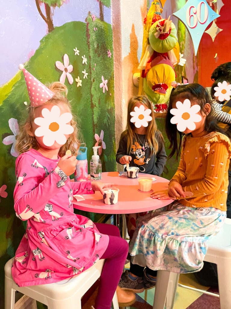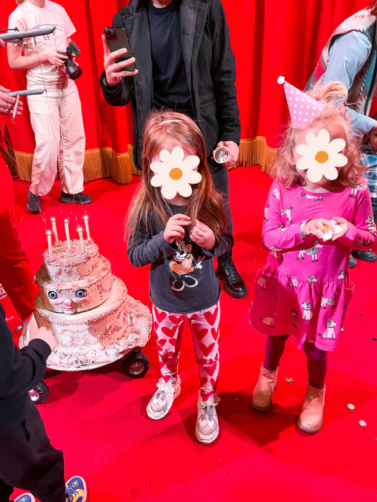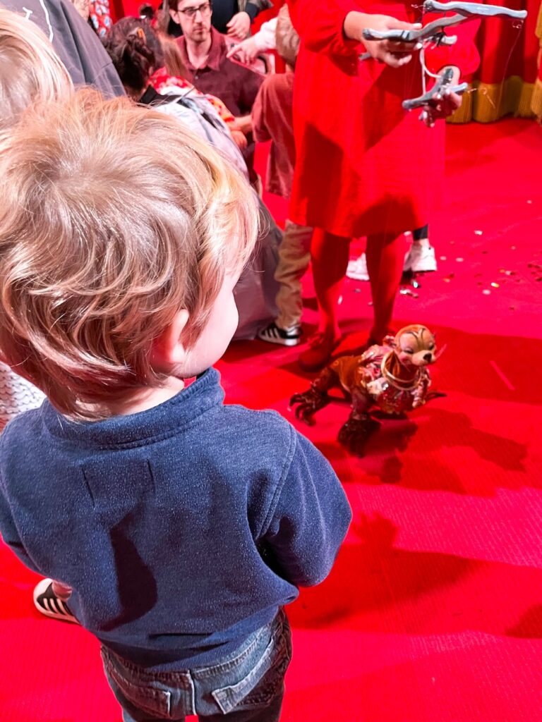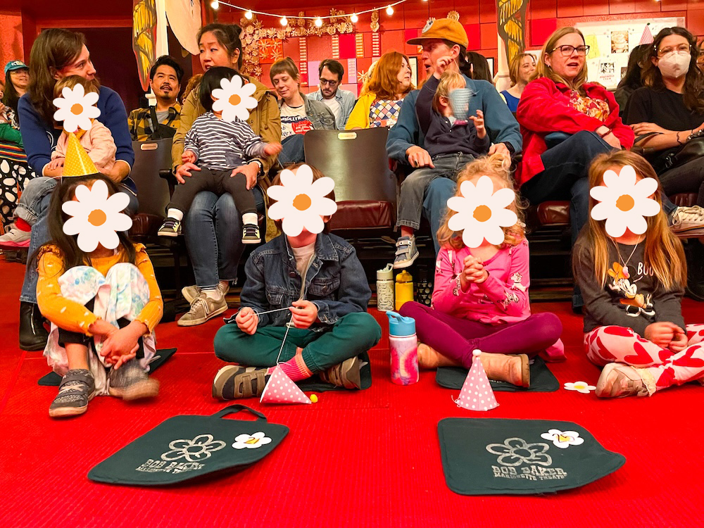 - Ticketed front-row seating is “criss-cross applesauce”: Kids (and some adventurous adults) can sit up front on the floor, making it an immersive experience. You can see the little numbered “cushions” in some of the photos on this post.