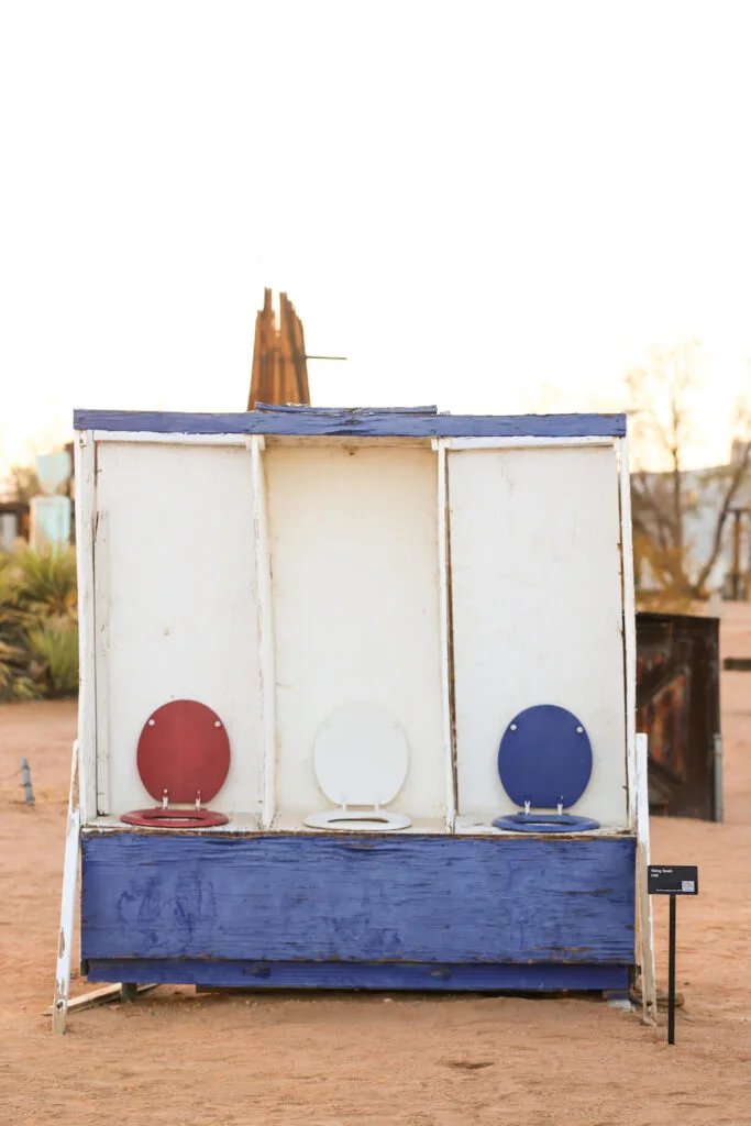 - White/Colored: Perhaps one of Purifoy’s most searing social commentaries, this piece features salvaged restroom doors labeled “White” and “Colored.” Set starkly in the desert, it confronts visitors with the raw, physical legacy of segregation and racism in America.