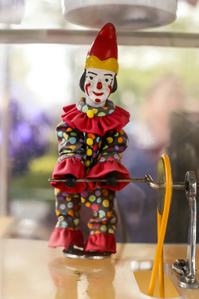 The Fantasyland popcorn cart turner still carries a clown figure as a nod to its origin!