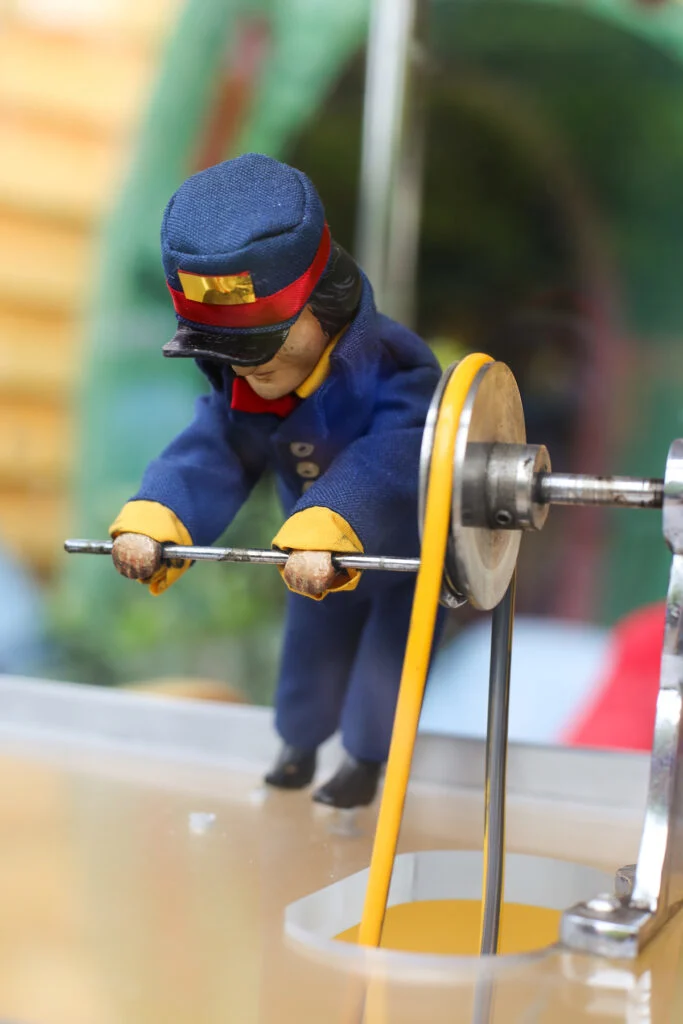 Now, it’s not a real popcorn turner, but inside the line for Mickey’s Runaway Train ride, you can see the oversized “El Capitoon” animated popcorn turner cranking the popcorn wheel.