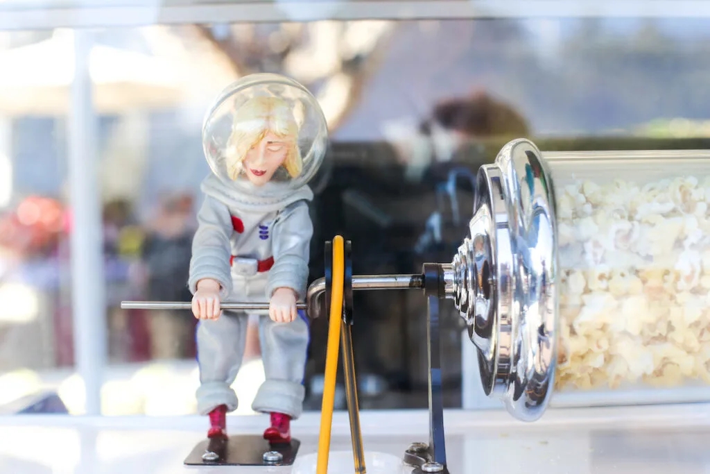 So next time you’re walking down Main Street with a popcorn bucket in hand, be sure to look and see who’s doing the hard work of turning your snack. You might just find a tiny astronaut, a tiny undertaker, or a tiny cowboy grinning as he cranks the drum. And you’ll have a great story to snack on besides the popcorn!
