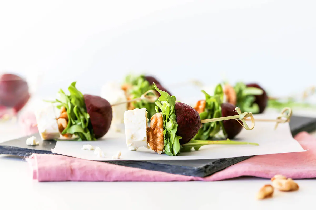 Do you need a perfect salad appetizer for end-of-summer BBQs or family get-togethers in the fall? Try this Beet Salad on a Stick! It’s a delicious appetizer that looks great on a tray, but I swear, it’s quick and easy to make!