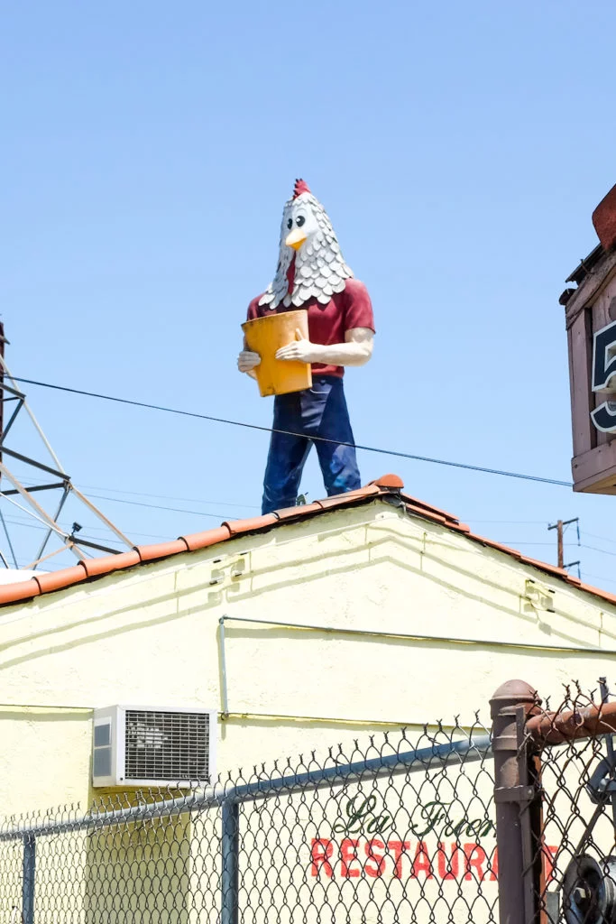 Chicken Boy // It’s a muffler man with a chicken head proudly standing over Highland Park. It’s pretty amazing!