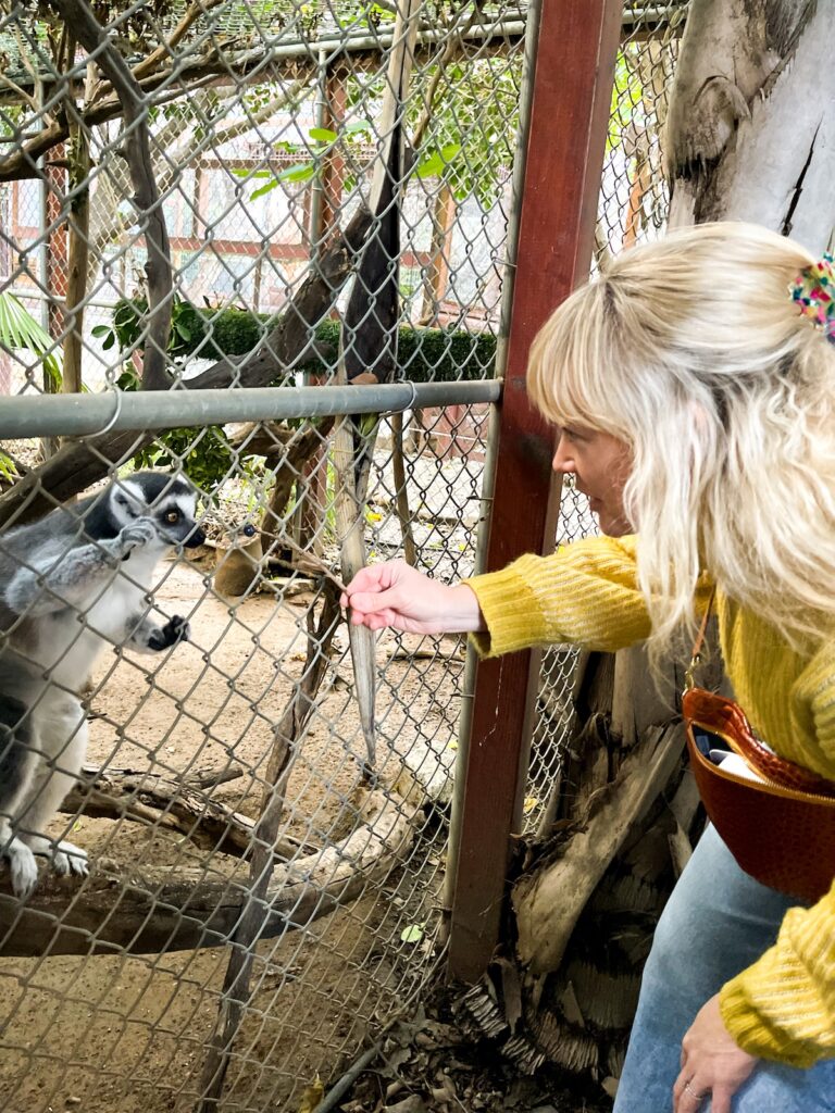 And then we later returned when everyone was a bit older and did another private tour and this time we got to feed the lemurs! The pair of lemur sisters were kicked out of their colony after one of them tried a coup. She wanted to be queen. Well, it didn’t happen and they were shunned, so for their safety, they were moved to WLC and now they live safely and get hand-fed blueberries on toothpicks!