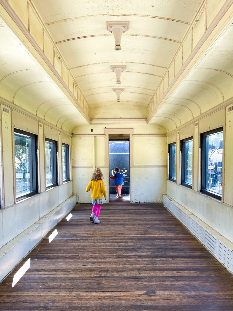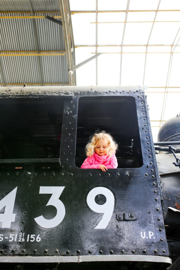 Outdoors, real vintage trains line the park, giving you a chance to see everything from old passenger cars to massive engines, while the beloved miniature train ride (paid ticket required) loops around the grounds and nearby parkland. It’s an easygoing, hands-on place where history, nostalgia, and simple fun all come together.